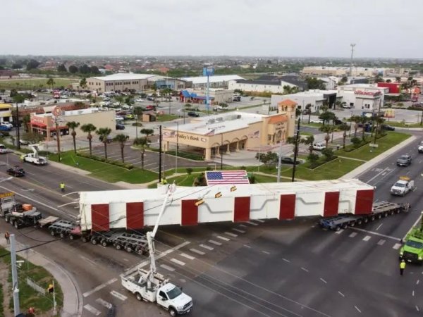 此次运输的货物规格堪称 “巨无霸”:其中一件长34.57米,宽4.32米,总重108吨。仅在美国境内的运输环节,就需协调19家机构审批,涉及道路临时封闭、警方全程护航,以及132条架空电线的临时抬升。仅最终段的运输方案规划就耗时四个月,可见跨国超大件物流的综合性、复杂性。