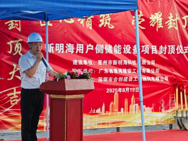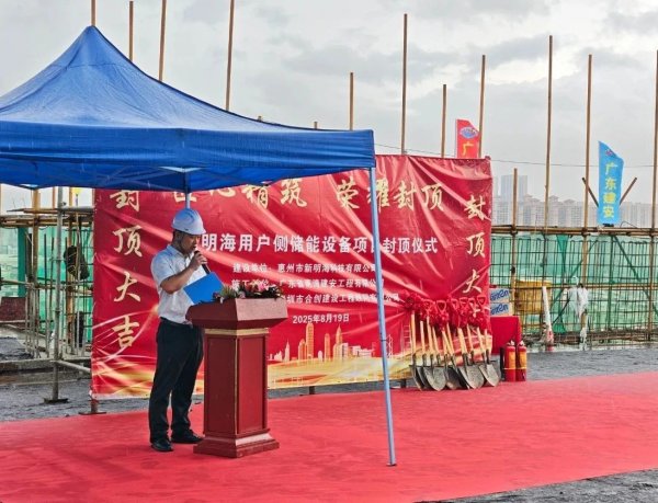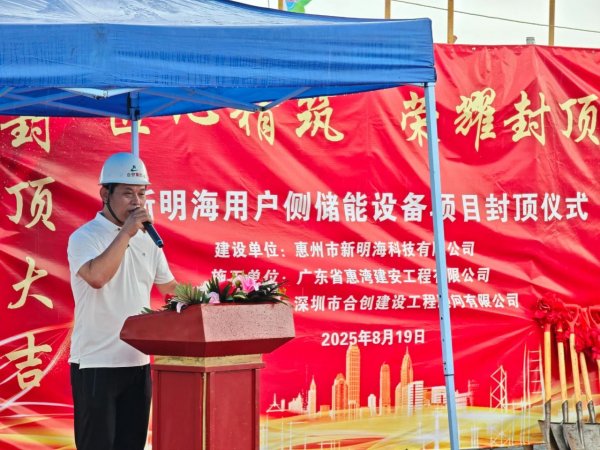 广东建安项目负责人肖腾蛟表示:新明海用户侧储能设备项目一期工程的封顶仪式,是一个具有里程碑意义的时刻,标志着我们的项目建设取得了阶段性的重大胜利。