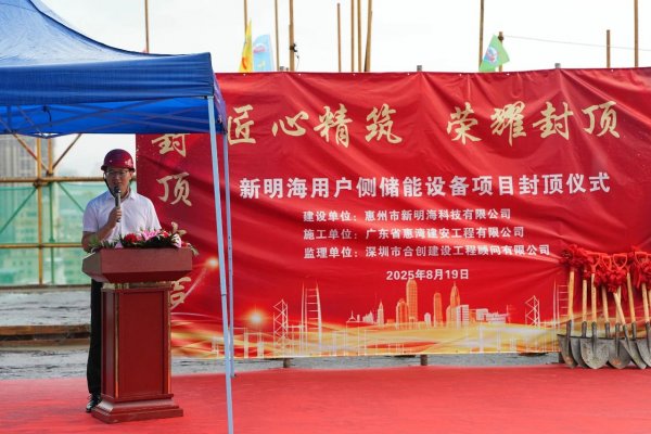 2025年8月19日,新明海用户侧储能设备项目迎来了工程建设的重要里程碑——主体结构圆满封顶!