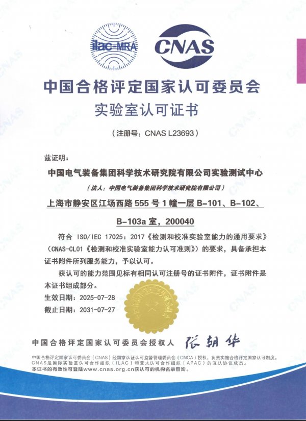 九游jiuyou娱乐官网-资质升级 | 中国电气装备科学技术研究院实验测试中心获得CNAS认可